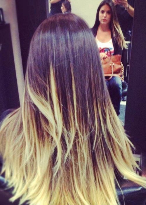 Esse também é um exemplo em que o castanho fica bem contrastante com o loiro nas pontas, mas esse é um estilo mais amarelado.
