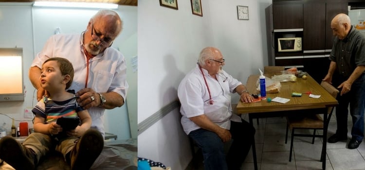 O espanhol de 65 anos, se mudou aos 9 anos para Argentina com a família e hoje mora com a mulher. Ele trabalha em uma unidade de saúde que tem uma sala para receber especialistas,  semanalmente. Ao seu dispor tem desfibrilador, máquina para realização de eletrocardiograma e oxigênio. São em média 50 pacientes diariamente, desde as 6 da manhã.