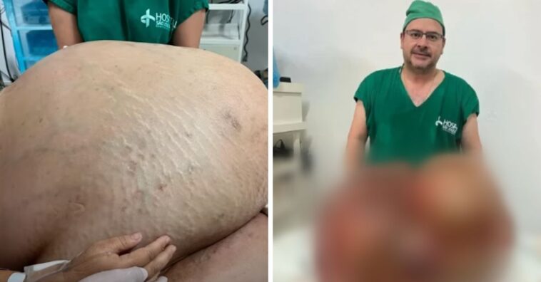 Agora, finalmente, sua angústia terminou. Em uma cirurgia delicada, os médicos do Hospital São José do Avaí, em Itaperuna, no Rio de Janeiro, removeram o tumor de 46kg da mulher, dando a ela uma nova vida.