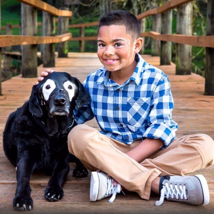 A vontade de Stephanie em encontrar uma solução que trouxesse de volta a autoconfiança do filho foi grande o bastante para que Rowdy, um labrador de 13 anos, aparecesse na vida dessa família em 2017.