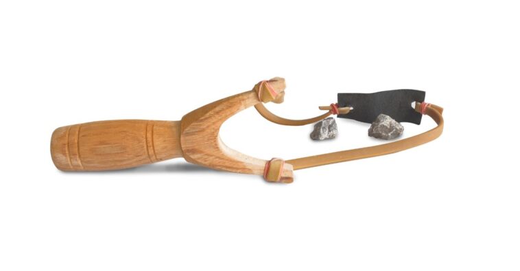 Então, corajosamente ele pegou seu estilingue e começou a atirar pedras no homem até ele desistir de fazer mal à sua irmã e fugir.