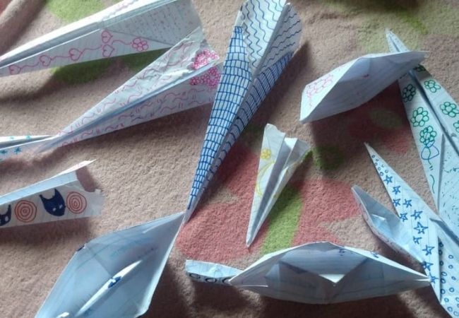 “Ele inventou de fazer os aviõezinhos, mas eu não sabia para o que era, não estava entendendo. Ele só ficou o dia todo falando que ia fazer avião de papel”, conta.