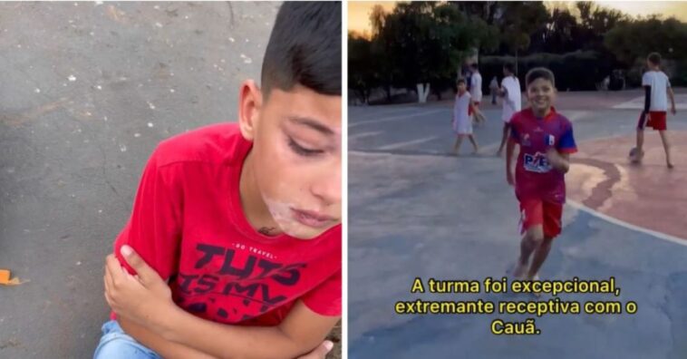 O pequeno Cauã, de 9 anos, foi rejeitado por um grupo de adolescentes que jogavam bola na rua, pois eles disseram que ele não era bom o suficiente para jogar no time deles.