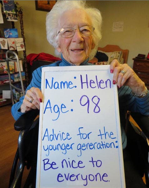 “Seja gentil com todo mundo”. Helen, 98 anos.