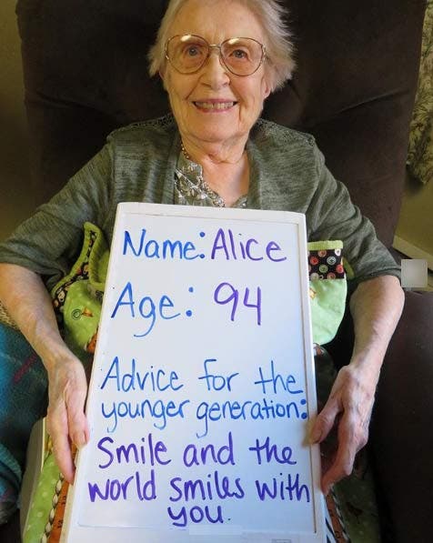 “Sorria e o mundo sorri com você”. Alice, 94 anos.