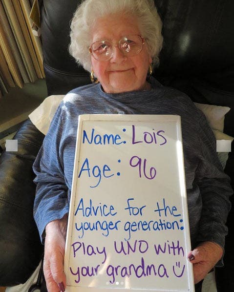 “Jogue UNO com a sua avó”. Lois, 96 anos.