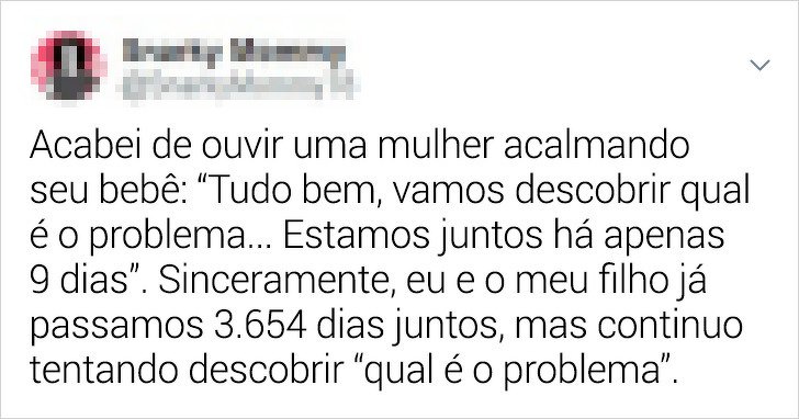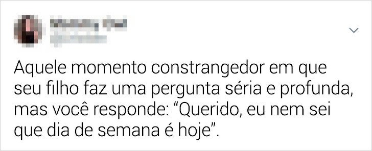 Veja esse compilado de tuítes de mães que compartilham sentimentos em comum e situações engraçadas com os filhos. Prepare-se para rir um pouco e, se for mãe ou pai, para se identificar também.