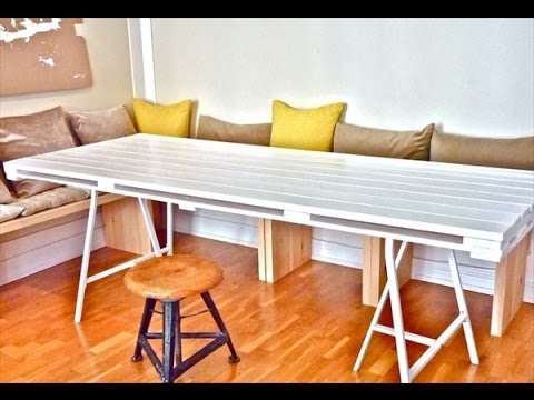Para começar, veja alguns tutoriais de como é possível fazer diferentes modelos de mesas de pallets. Há várias formas de confecção de mesas de madeira usando os pallets como base, por isso é interessante ver as diferenças antes de optar por uma delas, seja para fazer em casa ou contratar um bom marceneiro.