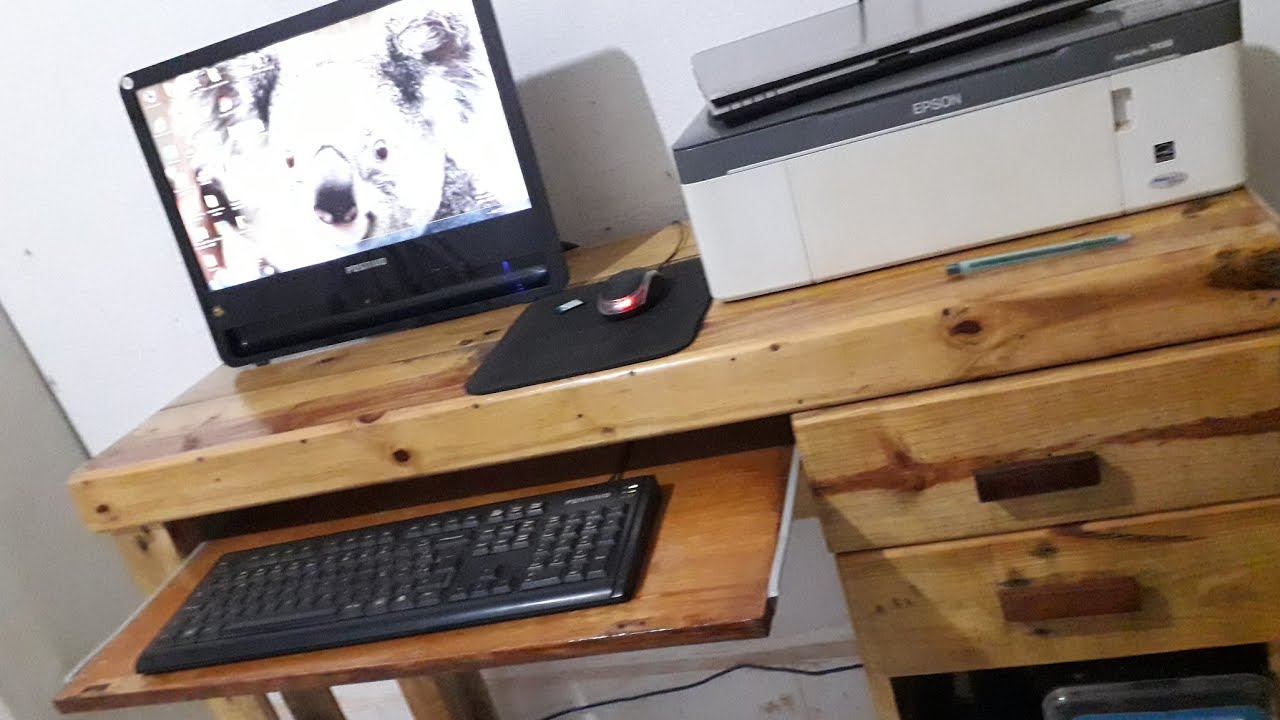 Não apenas uma mesa, mas sim, uma linda escrivaninha com espaço para o gabinete do computador, duas gavetas e espaço para o teclado. É uma mesa de tamanho reduzido, ótima para colocar no home office. Veja o processo para fazer a sua.