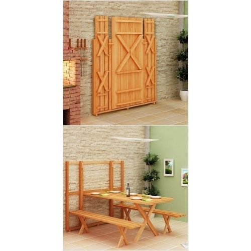 6. Para a área de churrasco, mesa e bancos ficam dobrados na parede