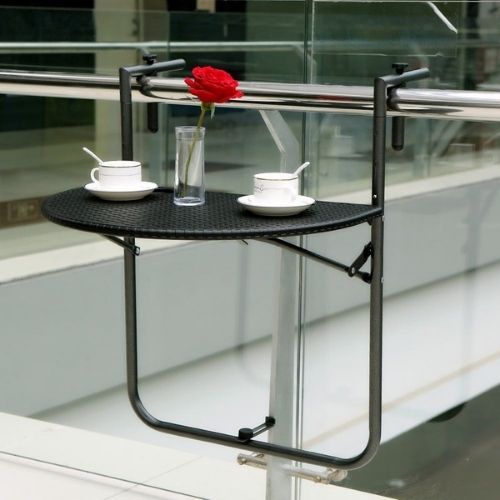7. Para sacadas muito pequenas, uma mesinha de café fixada no parapeito