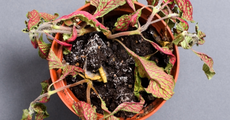 Se você notar que o mofo está bem profundo, o melhor a fazer é jogar essa terra toda fora e replantar sua planta em uma terra nova e saudável.