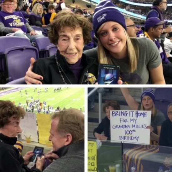 6. A Sra. Millie estava em um jogo de futebol americano e queria ir ao Super Bowl para comemorar seu aniversário de 100 anos. O time resolveu atender seu pedido.