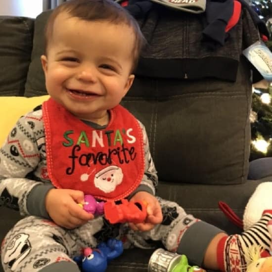 12. Com apenas 10 meses esse garotinho já tem seus brinquedos favoritos: os personagens da Vila Sésamo. Ele não escondeu a alegria ao ganhar um pacote de Natal.