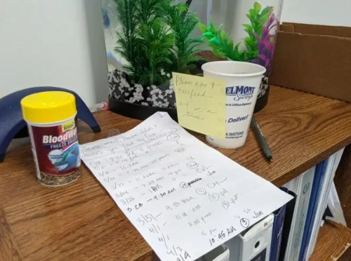2. Um trabalhador precisou ficar em casa por causa do coronavírus, mas quando retornou ao trabalho descobriu que as pessoas continuaram alimentando seu peixinho