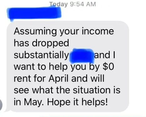 9. Este proprietário enviou uma mensagem aos seus inquilinos dizendo que não iria cobrar o aluguel de abril