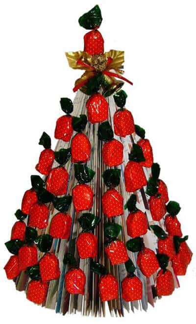A grande vantagem dessa árvore é que a sua decoração pode variar, conforme a criatividade e preferências de cada um. É possível misturar balas, tecidos, itens de decoração natalina prontos e papel na mesma árvore e obter um resultado muito bonito.