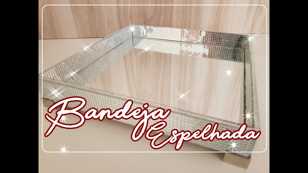 Se quiser apenas um detalhe da sua sala, quarto ou lavabo com revestimento espelhado, pode fazer uma linda bandeja para colocar objetos decorativos delicados. Esse modelo é feito com manta espelhada que vem em rolinhos e você encontra em lojas de artesanato. Também vai usar um espelho para ser o fundo da bandeja. Veja o passo a passo: