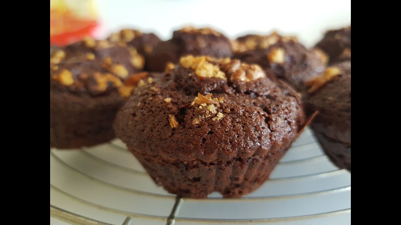 Mais uma receita saudável para preparar no lanche da tarde das crianças. Elas vão adorar e pedir mais, então faça duas fornadas. Essa receita é feita com cacau, água quente, açúcar mascavo, óleo de coco, ovos, essência de baunilha, sal, trigo integral, bicarbonato e nozes. Ficam bem fofinhos.