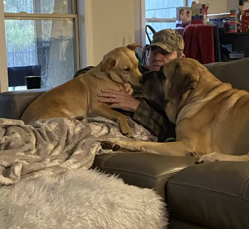 “Desde que me lembro, meu pai resgatou cães de rua”, disse Hall. “Crescendo, sempre tivemos um cachorro. Mas sempre havia espaço para um vira-lata necessitado. Agora que mora sozinho com a esposa, cabem vários. Eles trabalham com resgates na área para encontrar lares para os cães necessitados; no entanto, nem todos eles são realojados e ficam com o pai para sempre.”