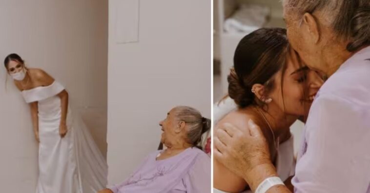 Bruna Solano, de 23 anos, foi criada pela avó, a dona Raimunda, e sempre soube valorizar todo o amor que recebeu. Como a idosa está muito doente, internada, a neta decidiu antecipar o casamento e aparecer de noiva no hospital para receber a bênção da avó.