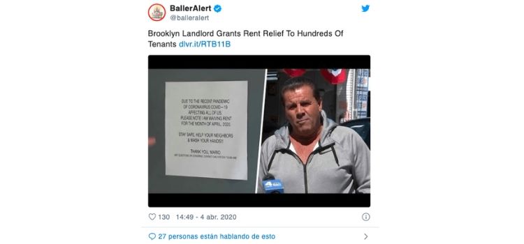 Em entrevista para a televisão local, ele disse que estava mais preocupado com a saúde das pessoas do que em receber os aluguéis do mês de abril, pois sabia o quanto este dinheiro poderia ajudar as famílias a terem um mês mais tranquilo. Para ele, não faria falta alguma.