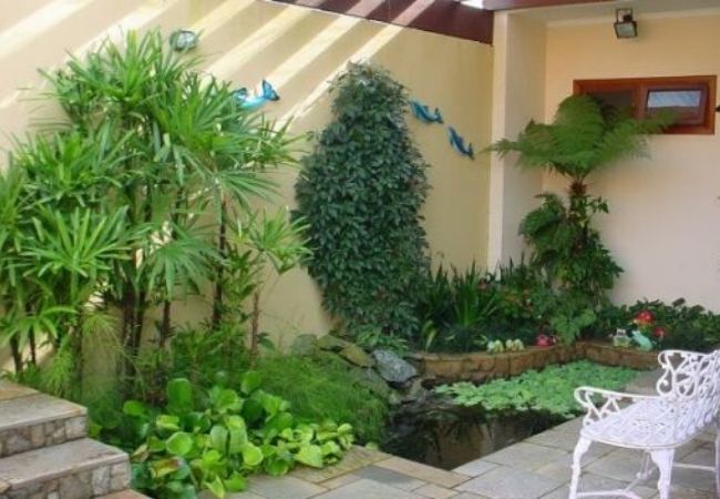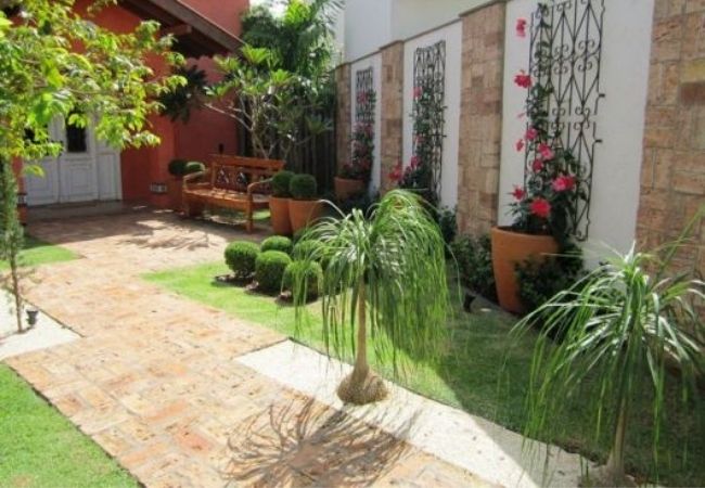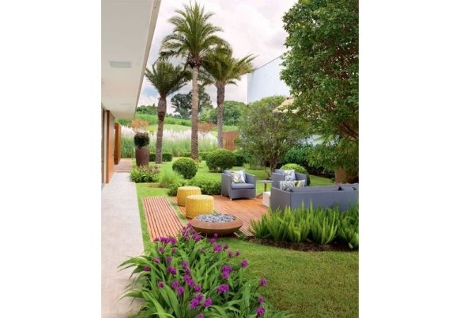 Se você tiver bastante espaço no jardim, e não tiver fiação de poste passando muito perto do telhado, pode escolher espécies bem altas, de médio e grande porte, para harmonizar com plantas menores e deixar o visual do jardim mais dinâmico.