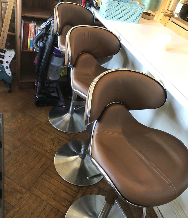 “Na calçada, encontrei estas quatro banquetas de couro legítimo com o recado: ‘Grátis! Agora sou vegano!’. Obrigado, vegano desconhecido!”