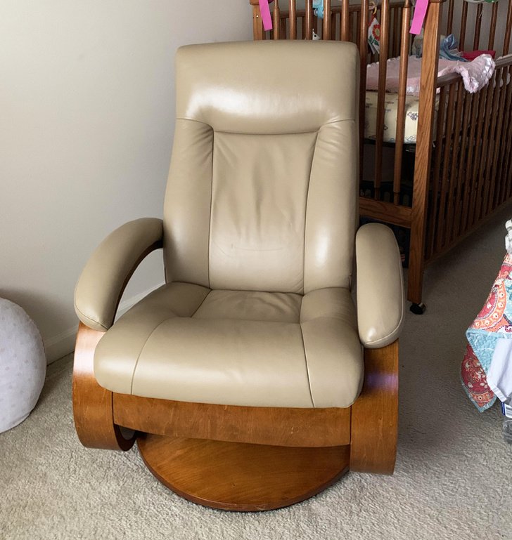 “Meu namorado encontrou isto na lixeira perto do trabalho. Eu limpei o couro com vinagre e passei óleo de linhaça na madeira”