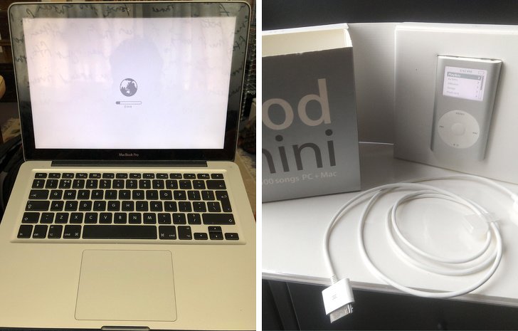 Até um MacBook Pro e um iPod mini foram descartados, apesar de funcionarem perfeitamente.