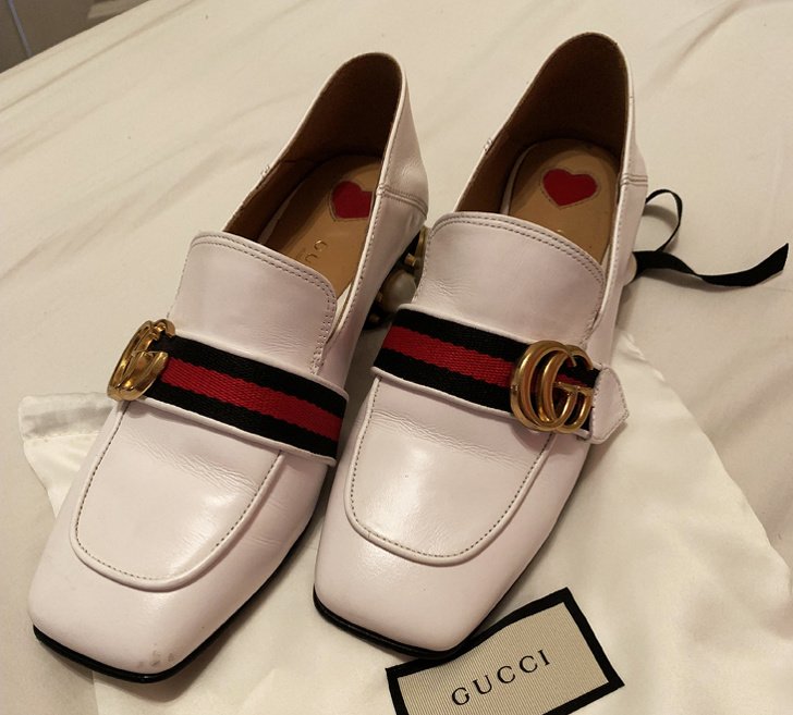 “Encontrei estes sapatos da Gucci na lixeira da universidade. Aliás, consegui tirar facilmente a sujeira da ponta deles”