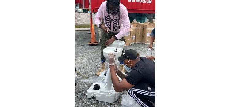 Junto com a equipe da ONG, eles montaram e distribuíram pias portáteis em pontos estratégicos da cidade de Atlanta, capital da Geórgia (EUA), para que as pessoas em situação de rua possam manter sua higiene pessoal com maior frequência.