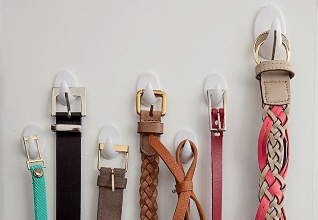 11. No quarto, os ganchos podem ser fixados no interior do guarda-roupas para organizar cintos e lenços