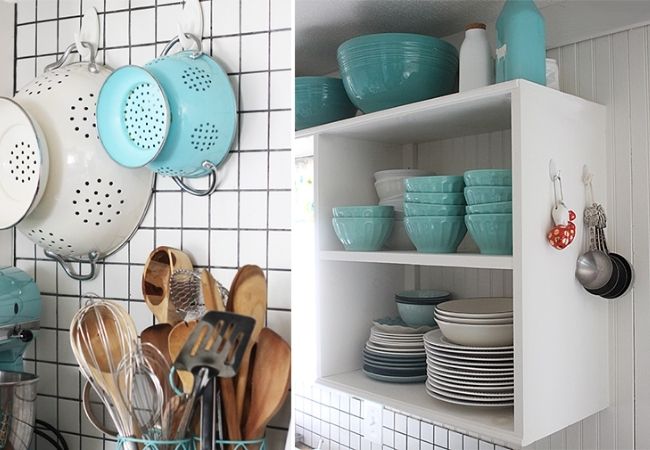 9. Na cozinha, os ganchos podem ficar por toda parte. Claro, mantendo a organização e com atenção à estética