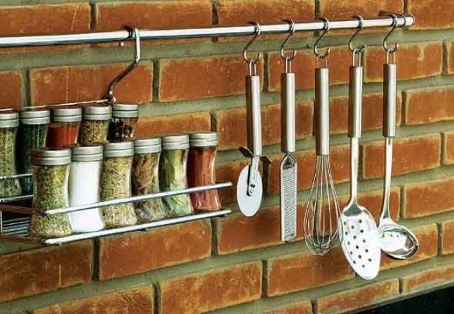 10. Esse modelo de gancho pendurado em haste fica muito bonito para deixar perto da pia e do fogão, sem à mão