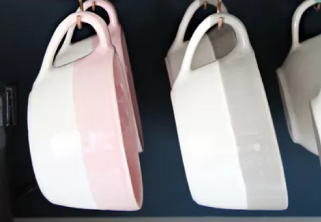 Essa dica também serve para deixar as xícaras do lado de fora do armário, podendo fixar os ganchos, por exemplo, na parte de baixo de um armário aéreo. Assim elas também acabam sendo decorativas.