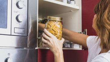 Primeiramente, verifique a data de validade de cada alimento da sua despensa. Depois, separe os produtos por categoria: massas com massas, grãos com grãos, conservas com conservas. Armazene, separadamente, latas, caixas e pacotes uns em cima dos outros, para poupar espaço. Pratos, copos, talheres, louças finas e travessas podem seguir a mesma lógica. Não se esqueça de limpar o armário dos pequenos eletrodomésticos por dentro e por fora. Um pano umedecido em álcool já resolve, mas, caso haja gordura, use detergente ou desengordurante em spray.