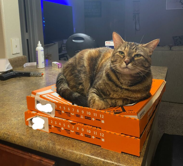 Cuidado quando comprar pizzas ou qualquer outra comida se tiver gatinhos famintos ou muito possessivos em casa. Esse pode ser o resultado.