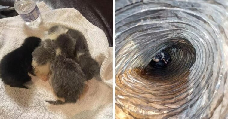 Ouviram gritinhos em um trailer e salvaram uma ninhada!