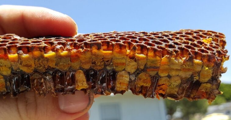 Assim como se coleta o mel e própolis das colmeias, também se coleta o pão de abelha e outros subprodutos que esses animais produzem.