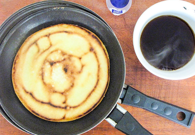 - Despeje toda a massa, deixe o fogo de médio para baixo e tampe. Aguarde uns 5 minutos, vire e deixe mais 5 minutinhos.