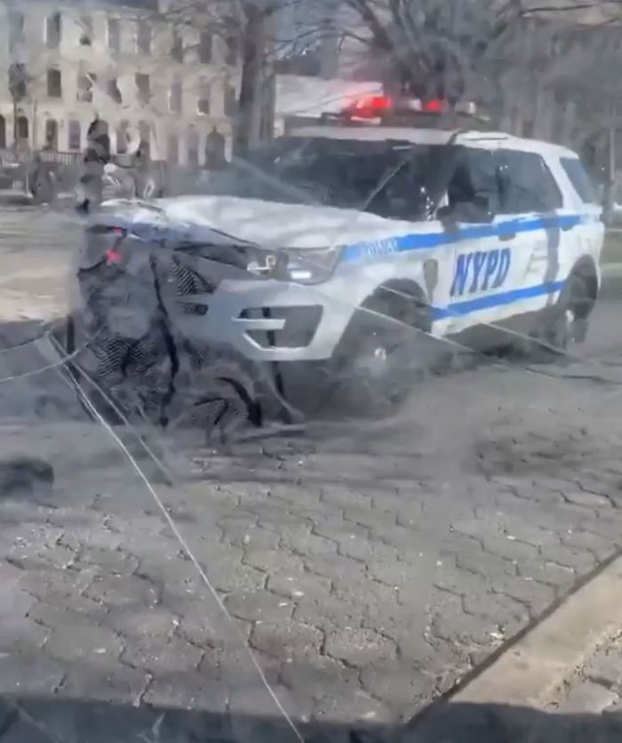 Não demorou para que o casal fosse surpreendido pela polícia. Afinal, o que era aquela bolha de plástico gigante caminhando pela cidade?
