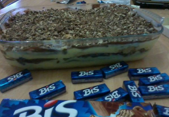 Nos dias de preguiça e vontade de um doce faça esse pavê prático com Bis