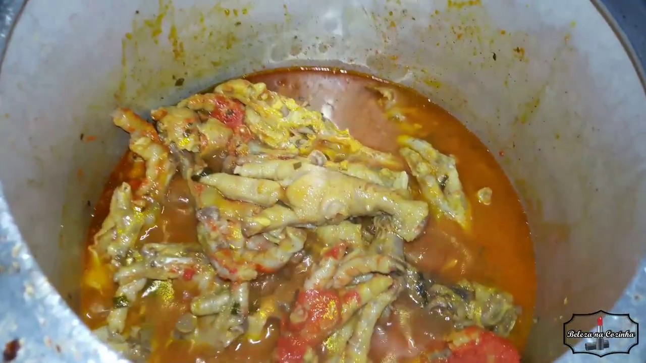 A receita mais comum para incluir os pés é a sopa, que pode levar quase todas as partes da galinha. Assim você aproveita ela inteira e deixa o prato ainda mais saudável. Mas, nessa receita, vai cebola, alho, pimentão, tomate, cominho, colorau, sal temperado, pimenta, chuchu, cenoura, abóbora e batata. Veja os detalhes no vídeo: