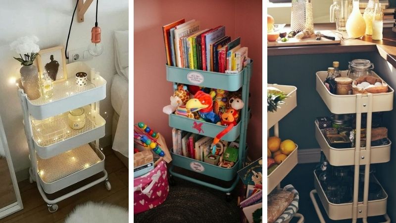 Os carrinhos com bandejas são peças perfeitas para investir, inclusive para ter em todos os cômodos da casa. Eles são bem fáceis de transportar, podem ter duas, três ou quatro bandejas de armazenamento e você encontra em diversos modelos para combinar com tudo. Pode ter um na cozinha, outro no banheiro, na sala, no hall e nos quartos, ajudando a manter a organização.
