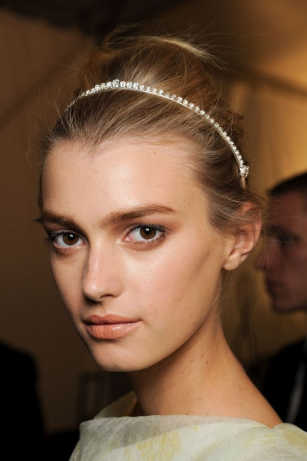 Por fim, um truque duplo. Se for fazer um coque baixo, desfie o topo dos fios com um pente e depois coloque para trás, arrumando bem de leve para manter o volume. Use um fixador e finalize com uma tiara que vai manter o volume bem preso.