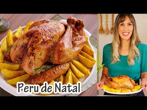 Veja como temperar e preparar o peru e as batatas no passo a passo do vídeo: