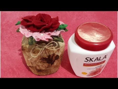 Se você tem potes de creme de hidratação que já estão no final do uso, lembre-se de guardá-los para colocar essa ideia em prática, aproveitando também os filtros de café usados que vão servir como a decoração externa do vasinho. As flores do vasinho são feitas de feltro.