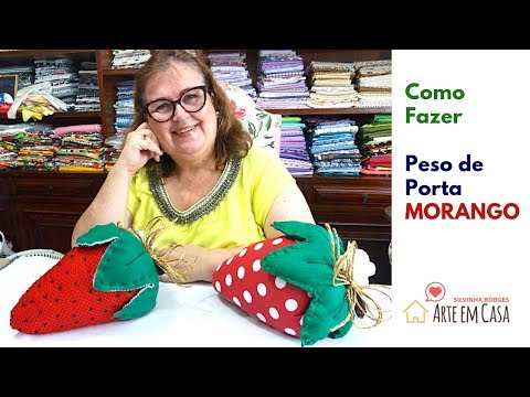Esse morango é mais uma fofura para deixar você na indecisão sobre qual modelo fazer primeiro. Ele é feito de tecido feltro estampado e dentro vai um saco de areia com plumantes em volta do saco para preencher e deixar fofinho.