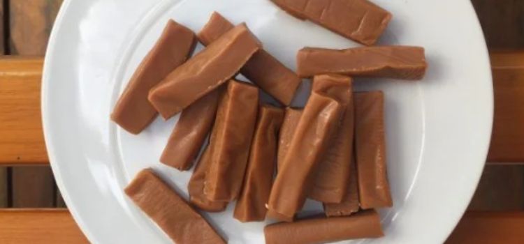 - Coloque o doce em um tabuleiro untado com manteiga e margarina para amornar, depois corte em pedaços e armazene em um frasco de vidro fechado, fora da geladeira.